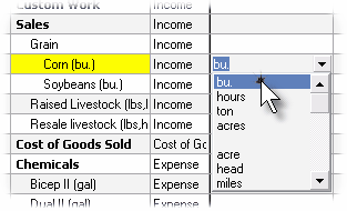 | 2. | Type the unit of measure you want, or click the cell's down-arrow and select one from the drop-down list. |