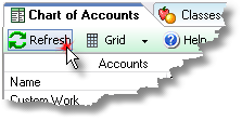 ManagePLUS maintains copies of certain QuickBooks lists, like the Chart of Accounts and Classes list, so that you can associate extra data with the items in those lists—units of measure, management quantities, and so on. This lesson shows how to open a list window and how to refresh a list from QuickBooks, using the Chart of Accounts as an example. To open the Chart of Accounts window: