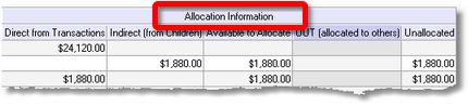 Allocation formula keystrokes Some special keystrokes are available when you're using the Allocated OUT (to others) dialog:
