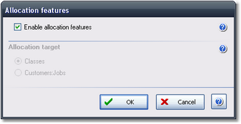 The Allocation Features dialog is for controlling the allocation features of ManagePLUS Gold.