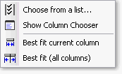 Displays the column selection button's list of grid columns, where you may choose columns to show in the grid by check marking them.